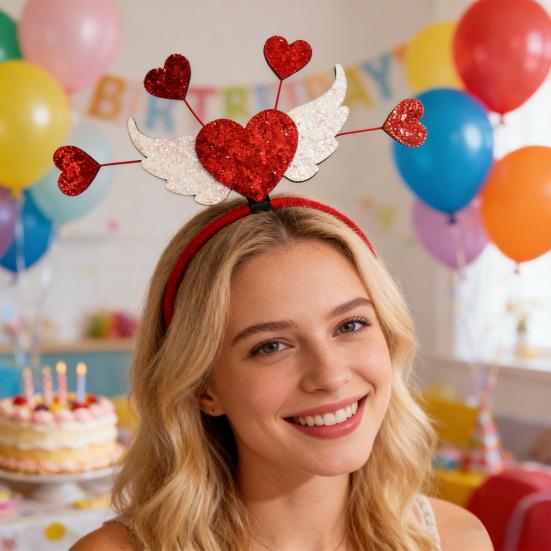Opaska na Walentynki dla Kobiet Brokatowe Serce Miłości Dodatek do Włosów na Walentynki Ślub Urodziny Artykuły na Imprezę