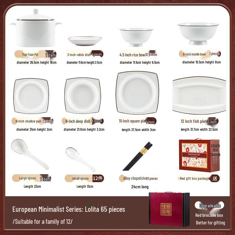 Mo De Lan Ka Square Lolita 65-Piece Porcelain Dinnerware Set for 12
