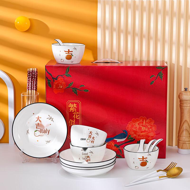 Auspicious Peony 16-Piece Ceramic Dinnerware Set