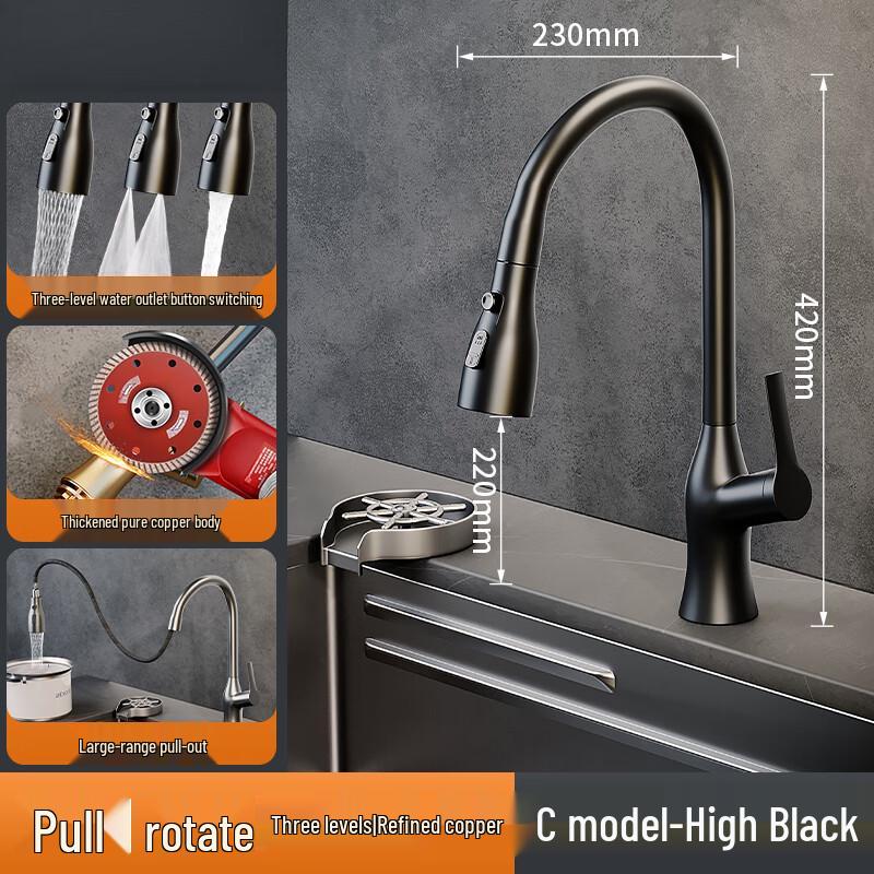 TLXT Gunmetal Grey Pull-Out Kitchen Faucet