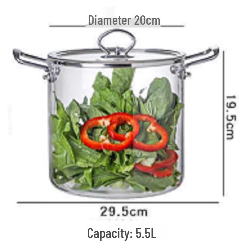 Szklany garnek do zupy z podwójnym uchwytem, 5,5 l, z wysokoboronokrzemowego szkła
