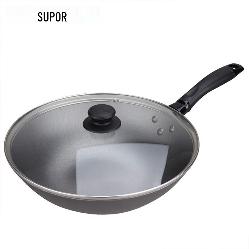 SUPOR Cast Iron Wok with Glass Lid