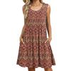 Damska Moda Casual Kolorowy Nadruk Kamizelka Luźna Sukienka z Kieszeniami