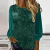 Damska codzienna bluzka z okrągłym dekoltem, długim rękawem, luźna, z cekinami