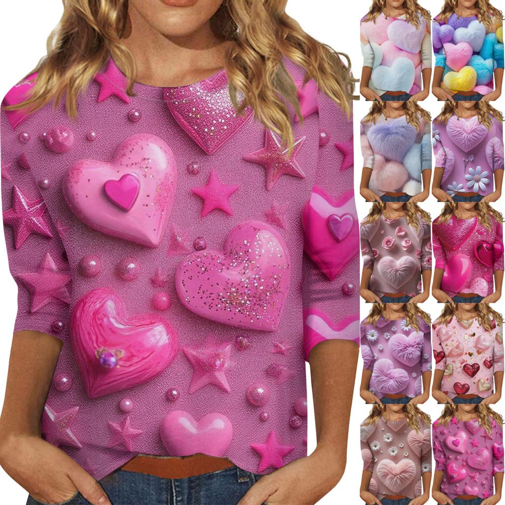 Women's Valentine's Day Print Fashion Casual 3/4 Sleeve Round Neck Top