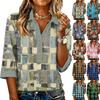 Women's fashionable and casual summer V,neck patchwork short,sleeved plaid print top