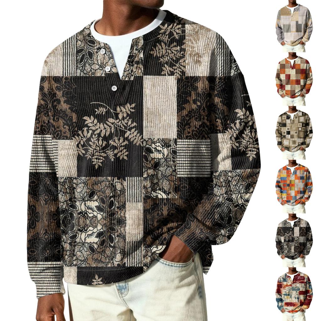Męski sweter z dzianiny prążkowanej z długim rękawem, z kołnierzykiem zapinanym na guziki