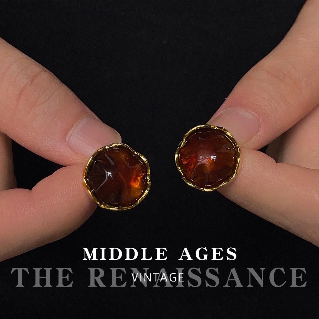 Amber stud earrings women's silver needles retro Hong Kong style temperament versatile earrings earrings