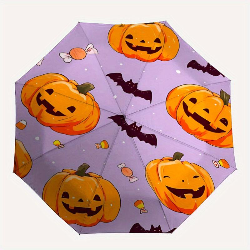 1pc Pumpkin Halloween Automatic Umbrella Auto Open/Close Folding Umbrella with 8 Rib Frame, 3 Fold Compact Umbrella for Men & Women, 110