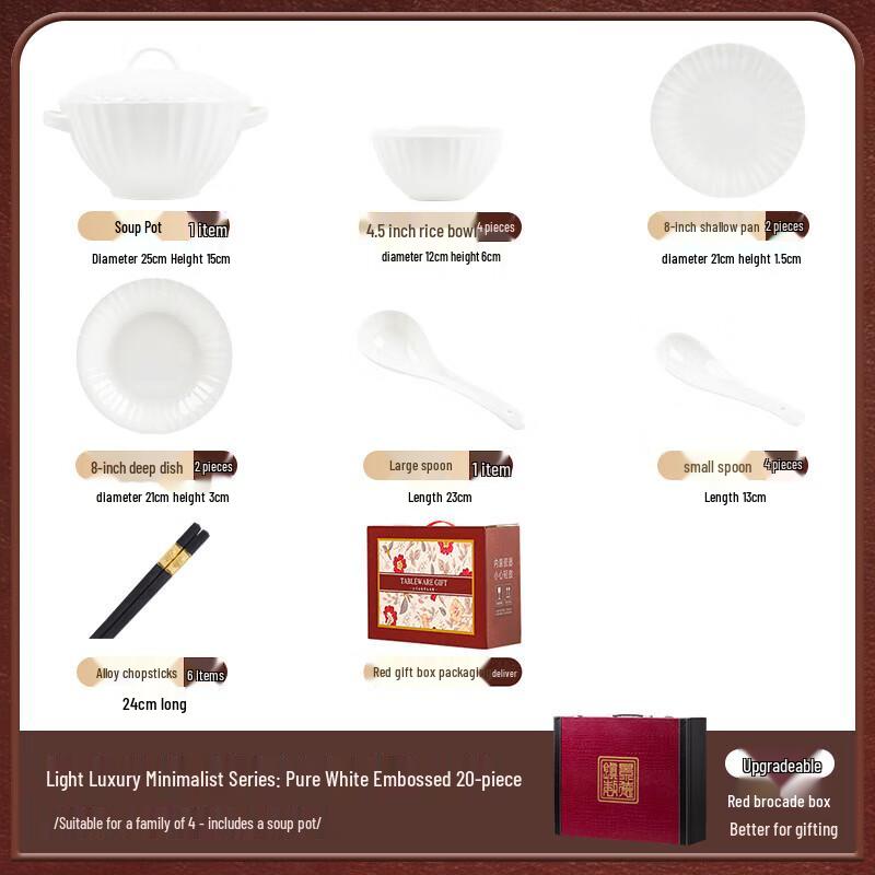 Mortel Lanka Pure White Embossed Ceramic Dinnerware Set