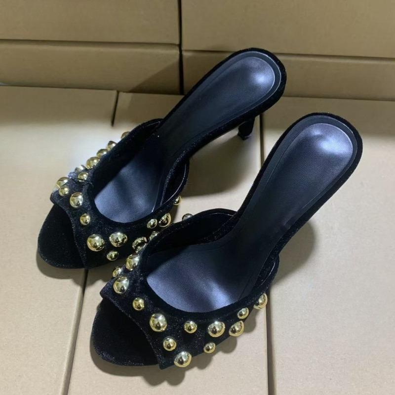 Letnie Damskie Sandały na Wysokim Obcasie Modne Bankietowe Nitowane Szpilki Zamszowe Z Odkrytymi Palcami Party Codzienne Casualowe Damskie Buty Mule