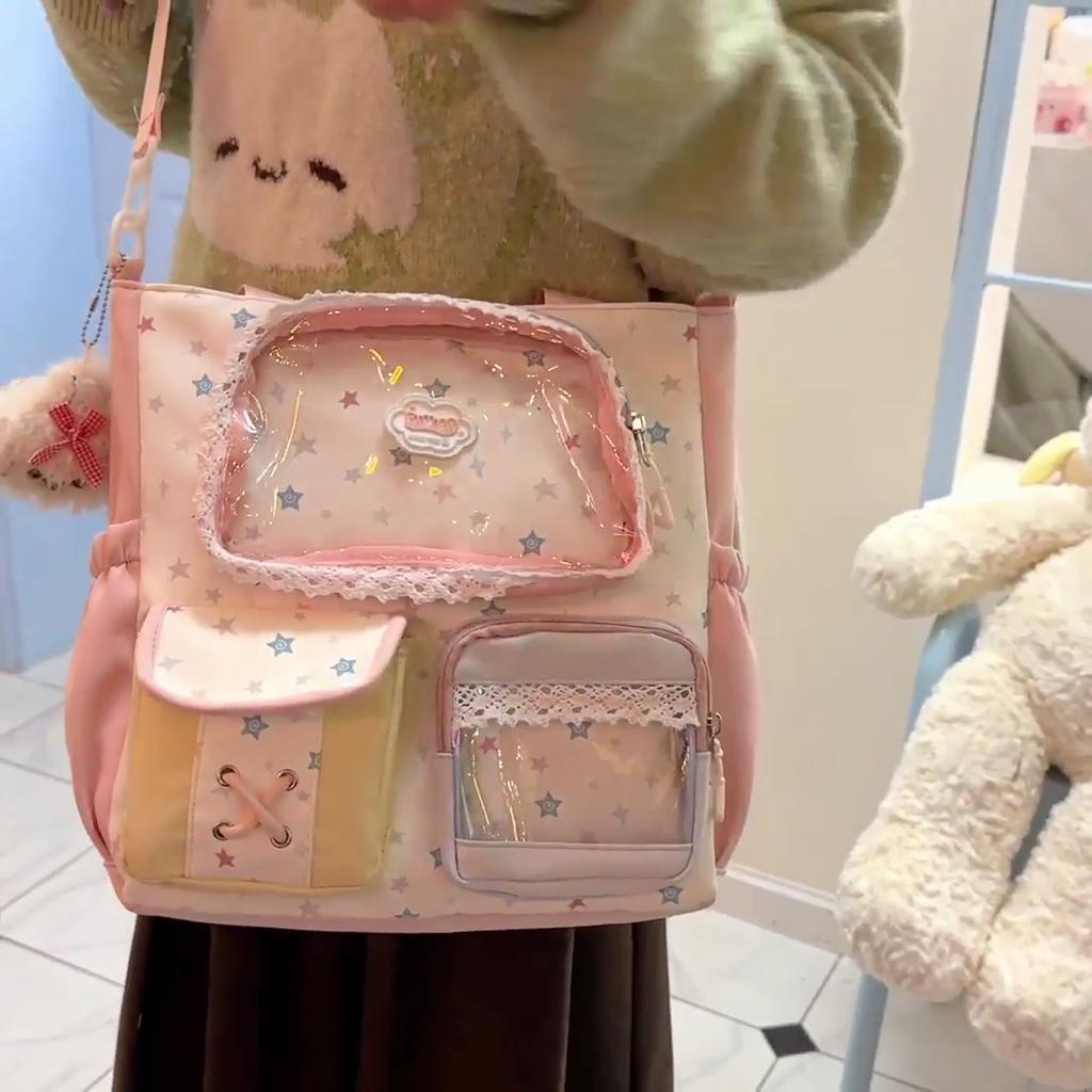 Women's Contrast Shoulder Bag Stars Print College Style Crossbody Bag
