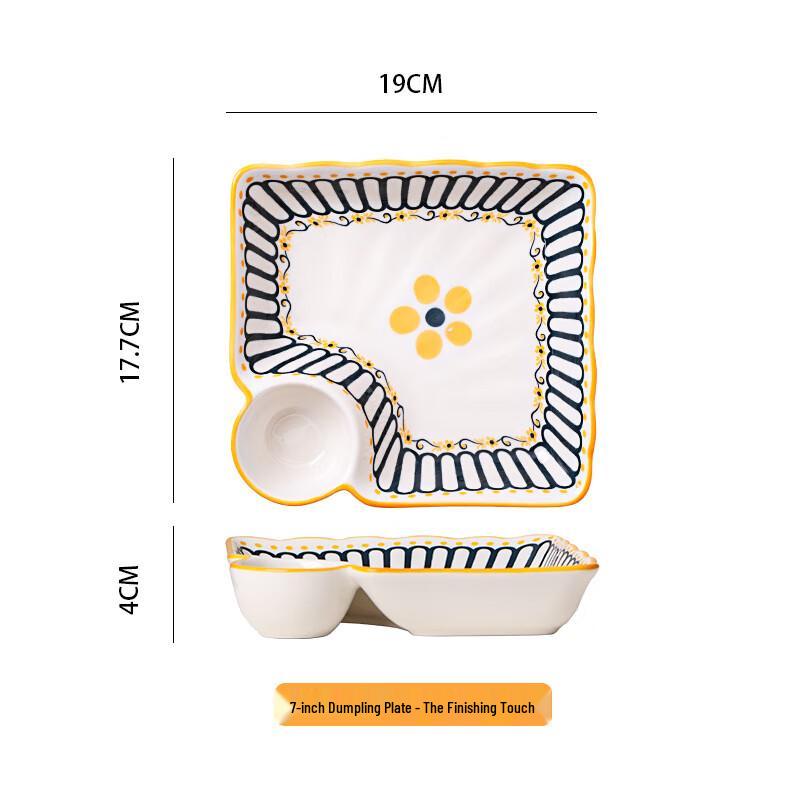 Shangqi Ceramic Dumpling & Sushi Plate Set with Sauce Dish