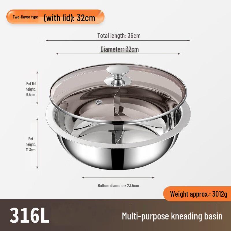 Wutuo 32cm 304 Stainless Steel Divided Hotpot