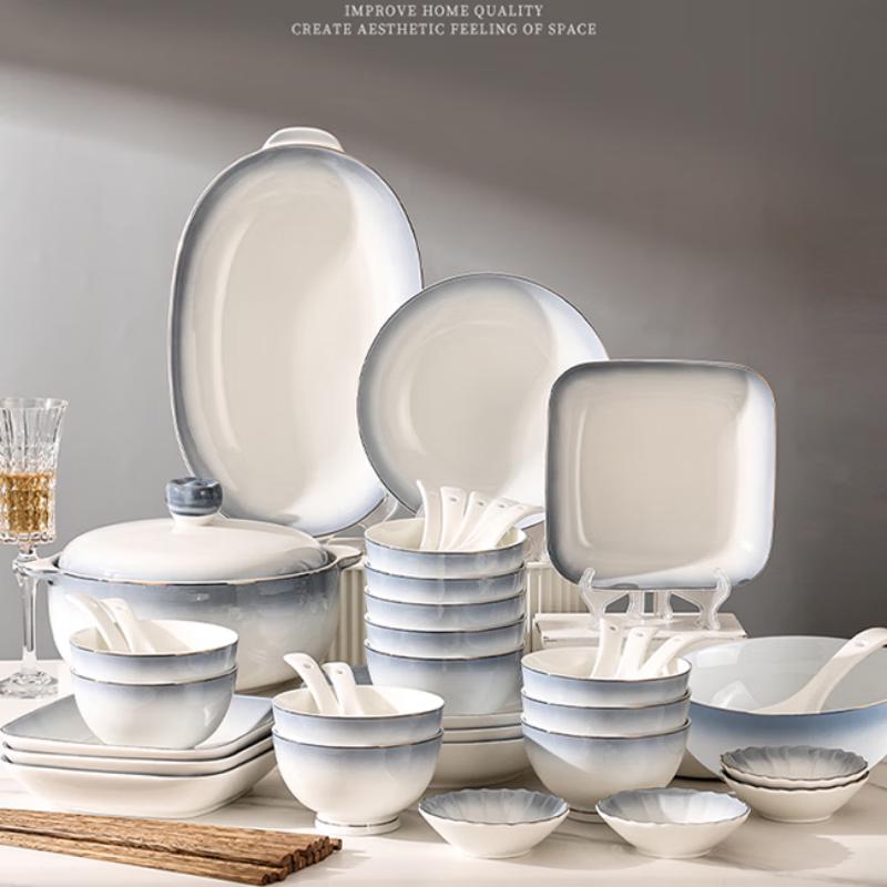 Hao Ai Jia Wieczny Błękit 50-elementowy zestaw naczyń ceramicznych
