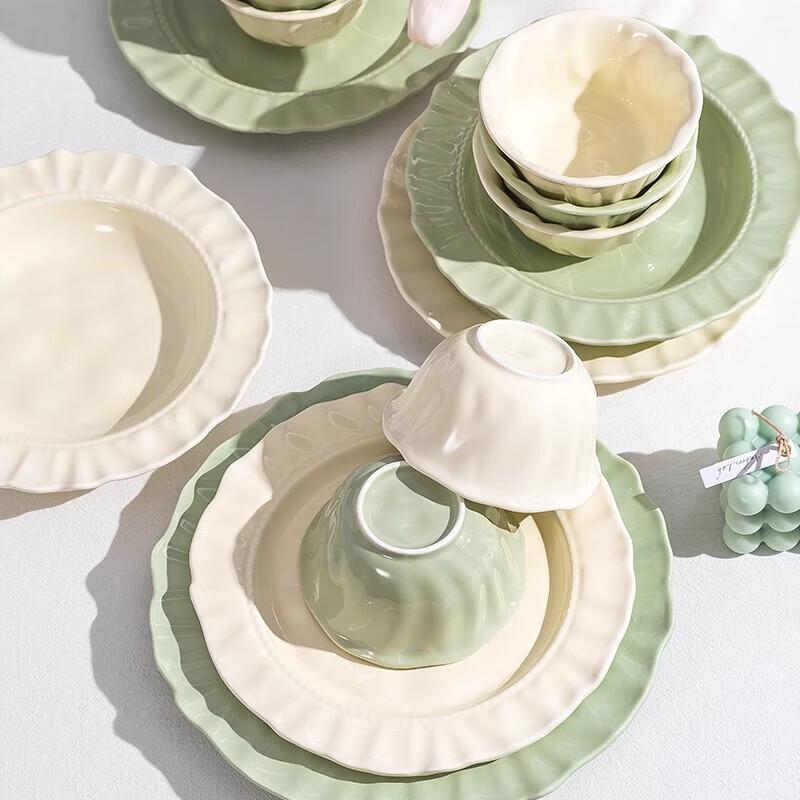 Panlu Ceramic Dinnerware Set, Underglaze Floral, 42-Piece