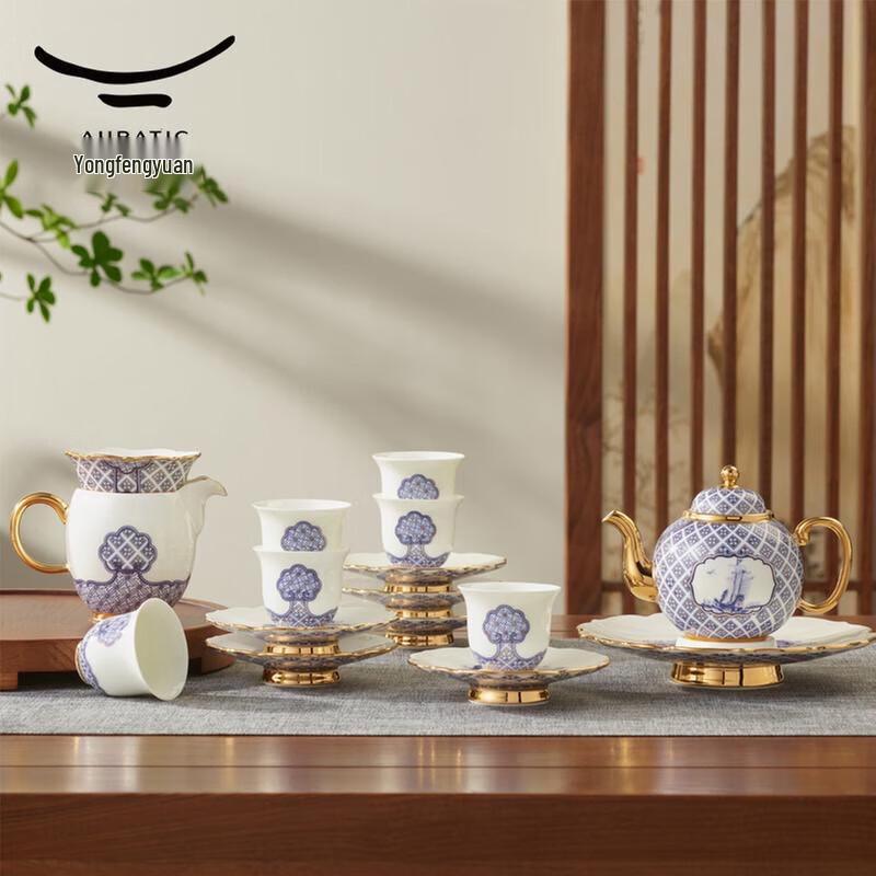 Yongfengyuan 'Peace and Prosperity' 17-Piece Chinese Ceramic Tea Set