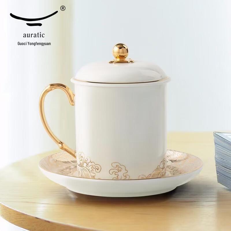 Yongfengyuan 'Pearl of the Sea' Golden Ceramic 3-Piece Conference Cup