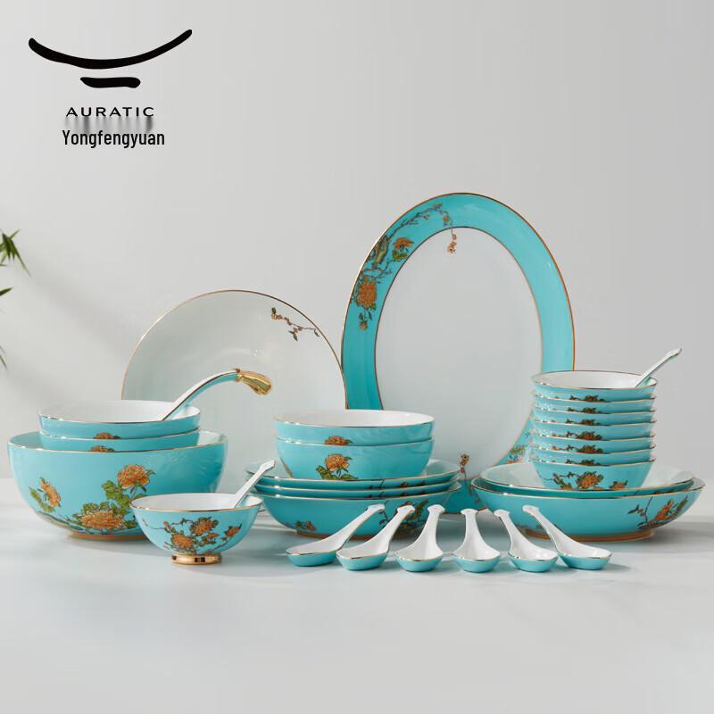 Yongfengyuan Madam Porcelain West Lake Blue 29-Piece Dinnerware Set