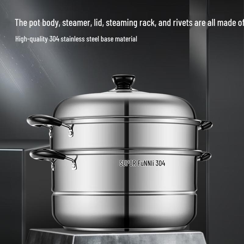 SUPOR 30cm Double-Layer 304 Stainless Steel Steamer Pot