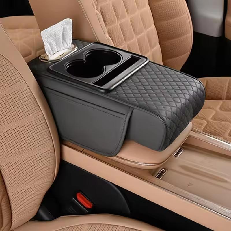 Car Armrest Box Heightening Cushion With Cup Holder Tissue Box Side Storage Pocket For Auto Interior Arm Rest Cover Height Pad