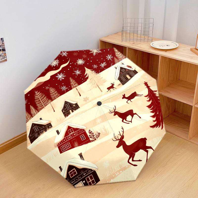 1 PC Automatic Folding Umbrella - Christmas horses, Christmas dogs Pattern, Portable & Foldable Design with 10 Ribs, Christmas Birthday Gifts