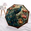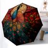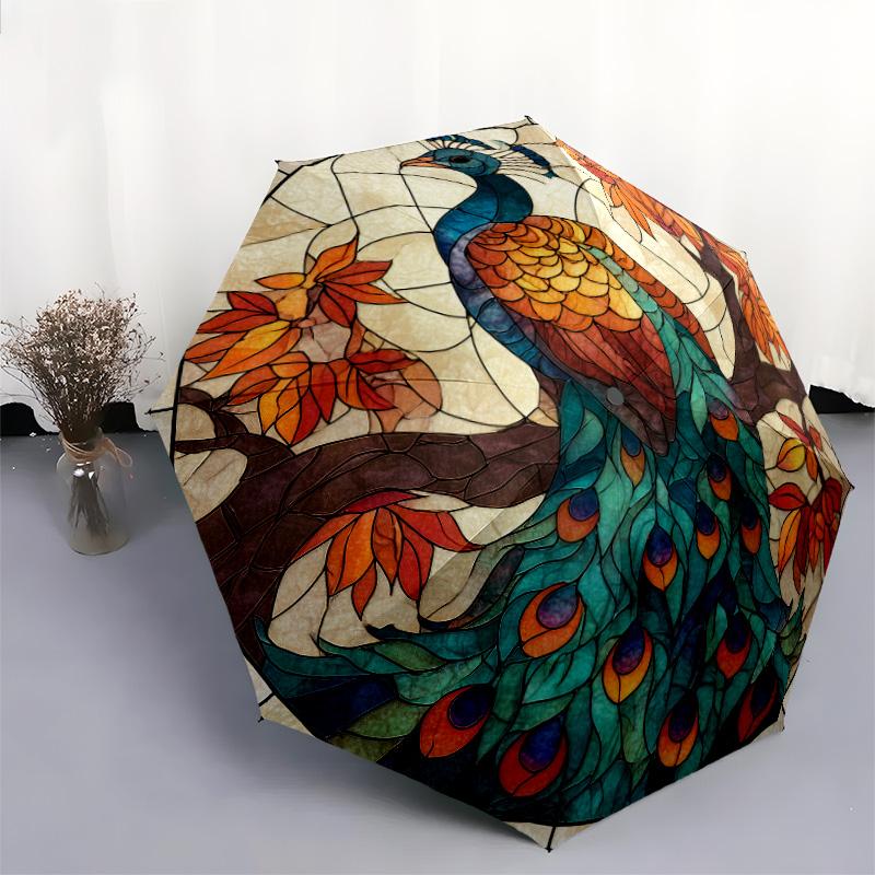 0106 Glass Window Peacock pattern, automatic folding umbrella, portable and foldable design, 8 ribs, a Christmas or birthday gift.