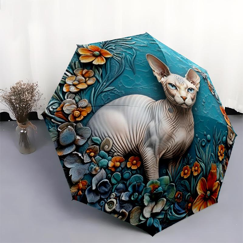 0106 Embossed Floral Animals pattern, automatic folding umbrella, portable and foldable design, 8 ribs, a Christmas or birthday gift.