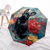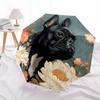 0106 Floral Black Dog pattern, automatic folding umbrella, portable and foldable design, 8 ribs, a Christmas or birthday gift.