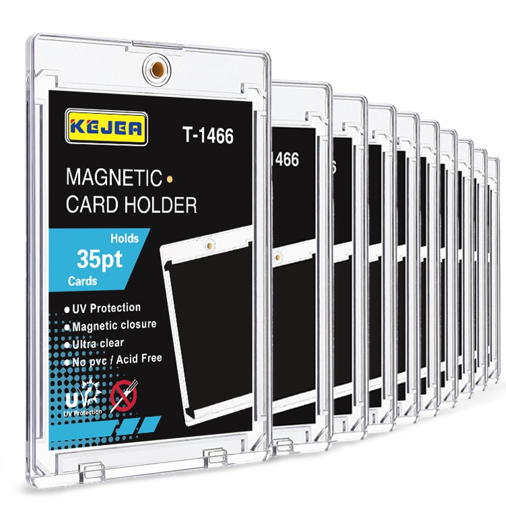 [Ochrona kart] Wysoka przezroczystość zapewnia, że piękno Twojej kolekcji nie jest zagrożone. Ponadto blokuje ponad 99% promieni UV, skutecznie zapobiegając oparzeniom słonecznym i blaknięciu. Pyłoszczelna i wodoodporna konstrukcja zapewnia bezpieczne długotrwałe przechowywanie.. Wykonane z bardzo trwałych materiałów (żywica PS/bez PVC, bezkwasowy, bezzapachowy), został zaprojektowany nie tylko do eksponowania Twoich cennych kart, ale także do ich ochrony.