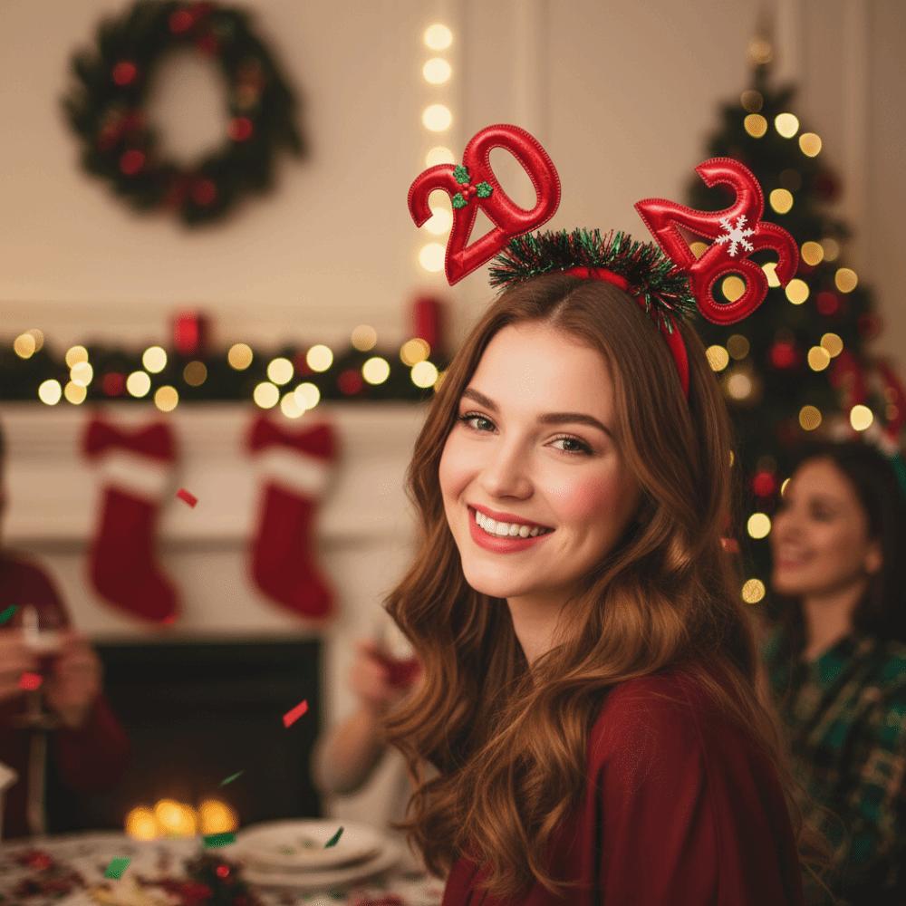 Sequin 2026 Noworoczne Opaski do Włosów Kolorowa Gwiazda Świąteczna Opaska Wygodna Świąteczna Nakrycie Głowy z Brokatem Sylwester