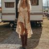 Damska marszczona dopasowana sukienka maxi z krótkim rękawem, siateczkowy dekolt V, długie sukienki na imprezę koktajlową