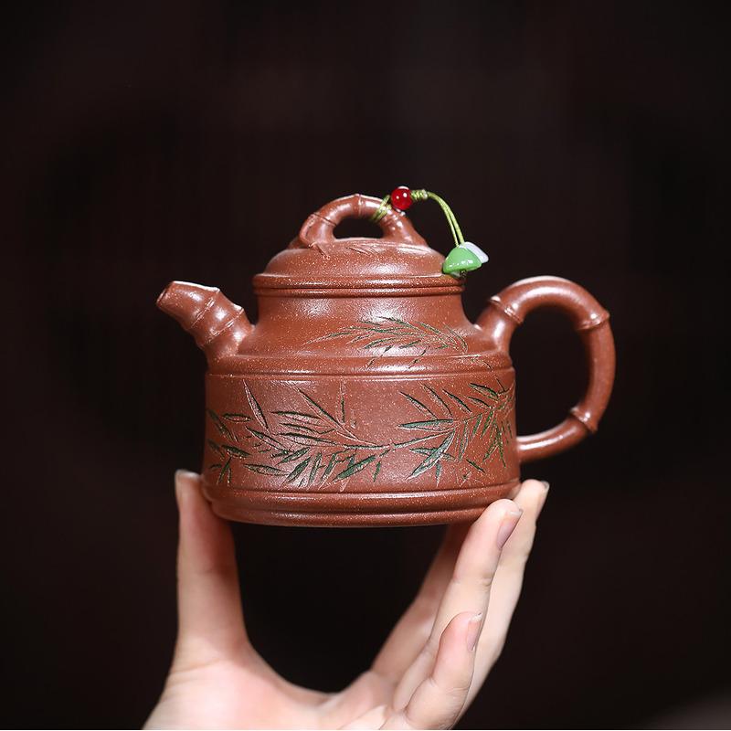 250ml Yixing Purple Clay Teapots Artists Handmade Bamboo Tripod Pot Raw Ore Red Downhill Mud Tea Brewing Kettle Zisha Tea Set
