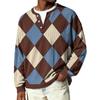 Męski sweter z dzianiny prążkowanej z długim rękawem, z kołnierzykiem zapinanym na guziki