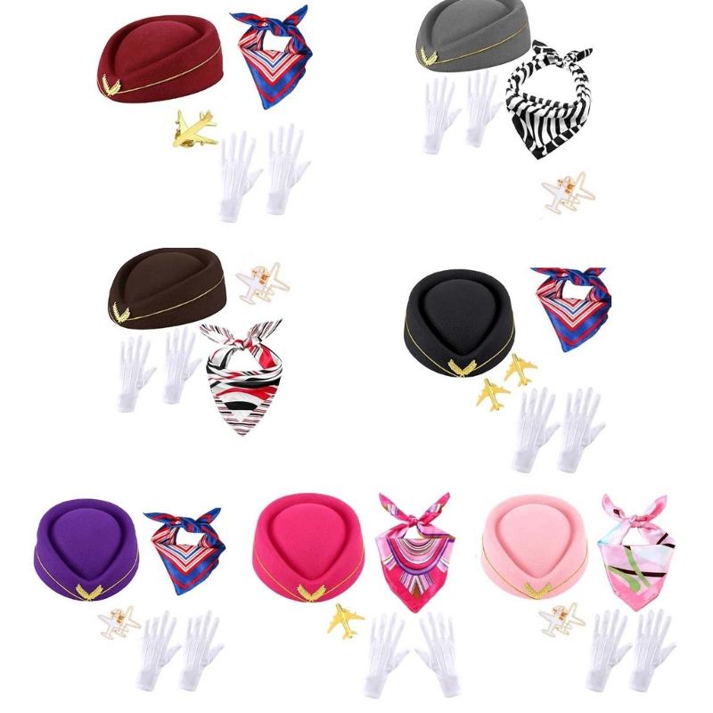 Women's Flight Attendant Costume Accessories Stewardess Outfits Halloween Air Hostess Cosplay Costume with Bellhop Hat