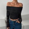 Women's Off,Shoulder Single,Layer Lace Slim Fit T,Shirt Long,Sleeved Top