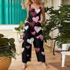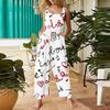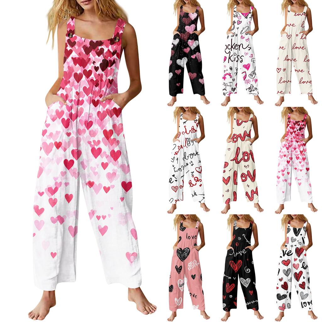 Women's heart,shaped printed casual loose retro overalls cotton and linen one,piece pants