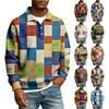 Męska codzienna luźna bluzka z blokami kolorów, z klapą zapinaną na guziki i długim rękawem