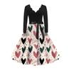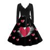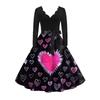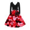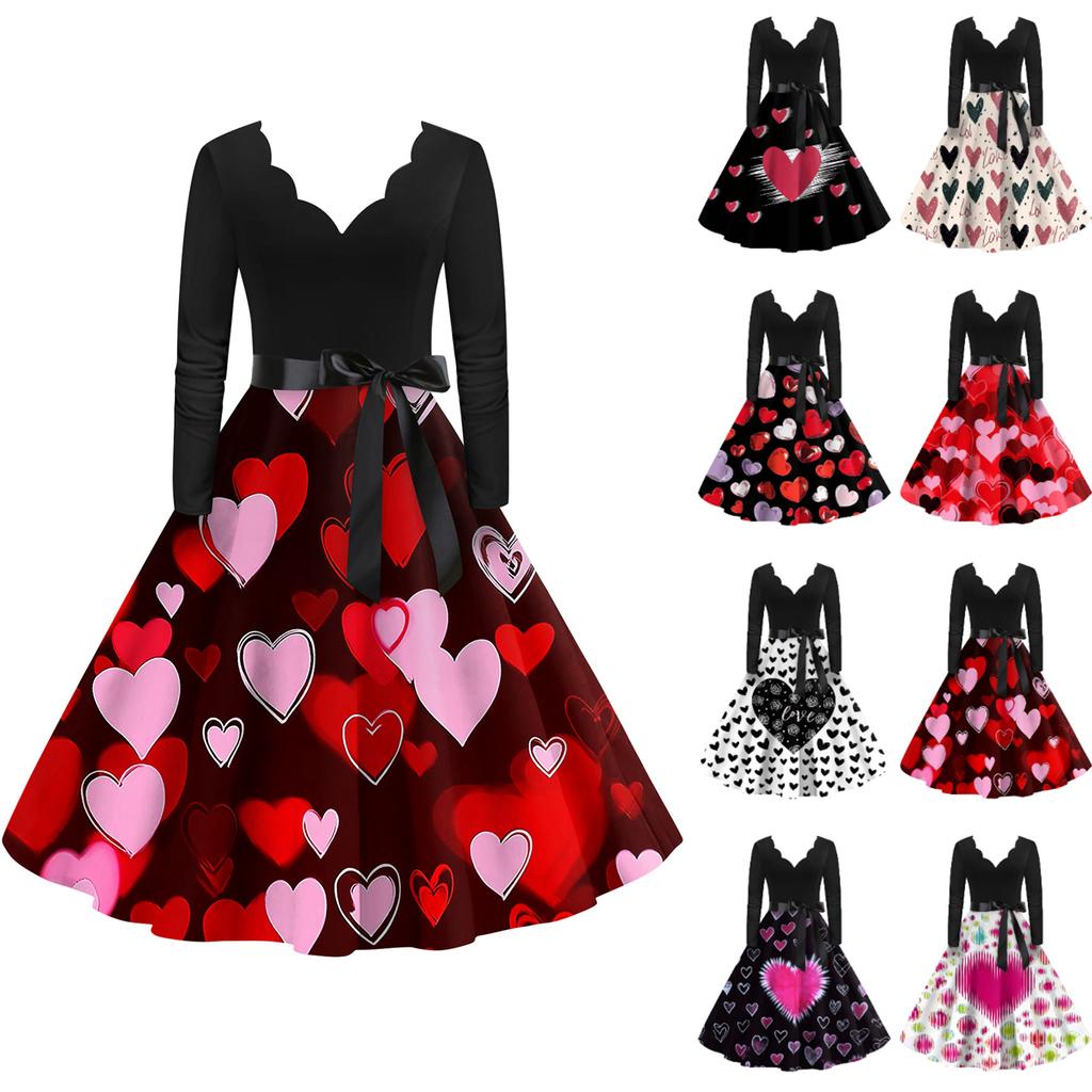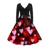Damska stylowa i elegancka sukienka z długim rękawem, dekoltem w serek w kształcie serca na Walentynki