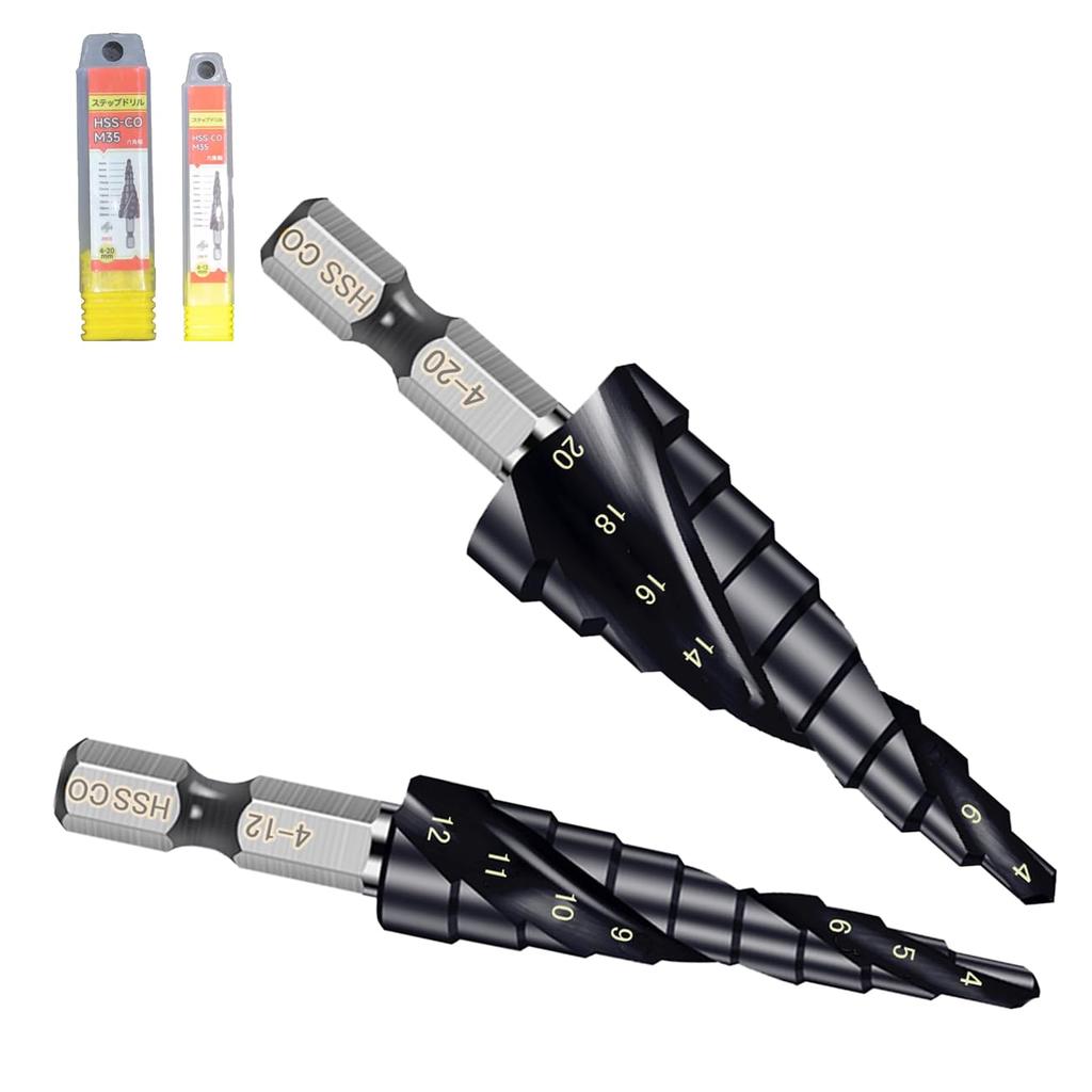 Hex Shaft Step Drill, Twist Drill M35 Cobalt High Speed Steel, Titanium Nitride Coated