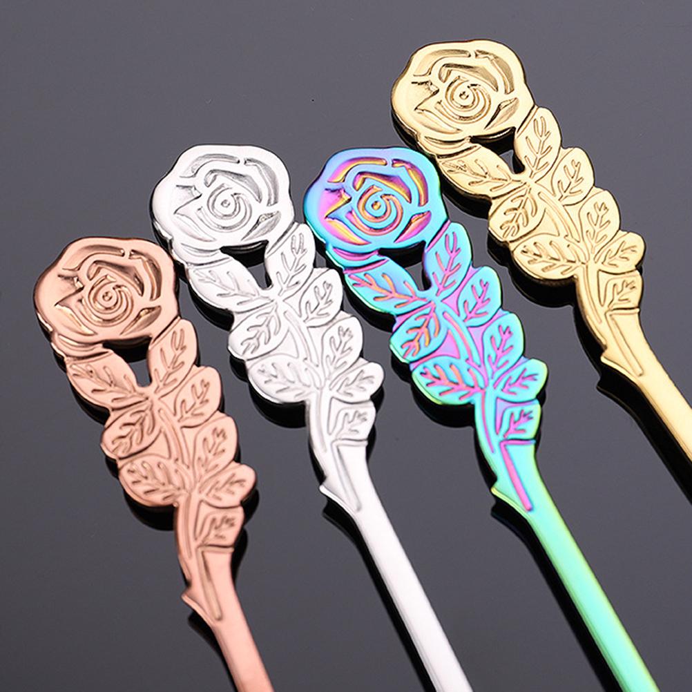 3pcs Stainless Steel Mini Dessert Spoon Rose Handle For Coffee Tea Cappuccino Ice Cream Sugar Stirring Creative Flatware Home
