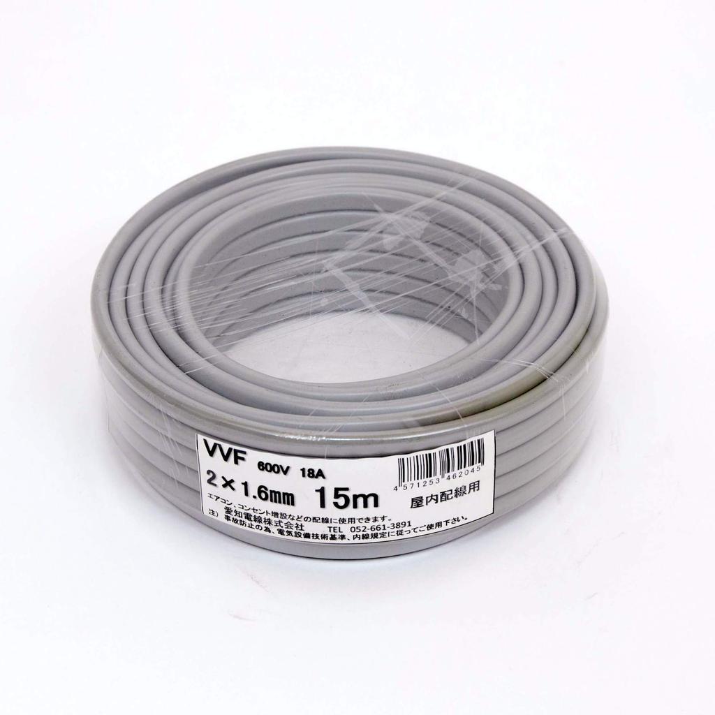 Aichi Electric Wire VVF Cable 2 Core 0.06 inch (1.6 mm) 32.9 ft (15 m) Gray VVF2 x 1.6M15