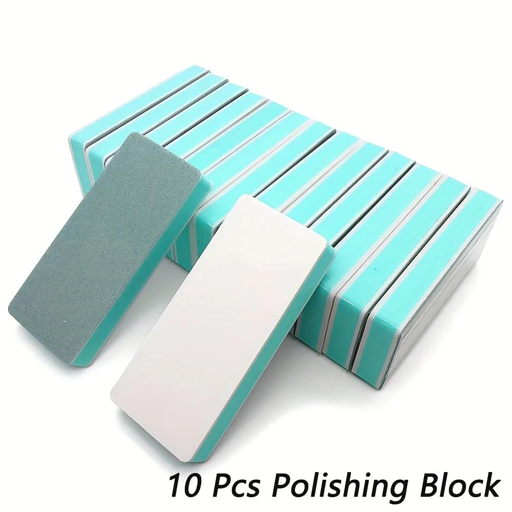 10pcs Reusable Handheld Styles Green-White Double-Sided Nail Buffers Block Polishing Pedicure Soft Sponge Nails File Tool