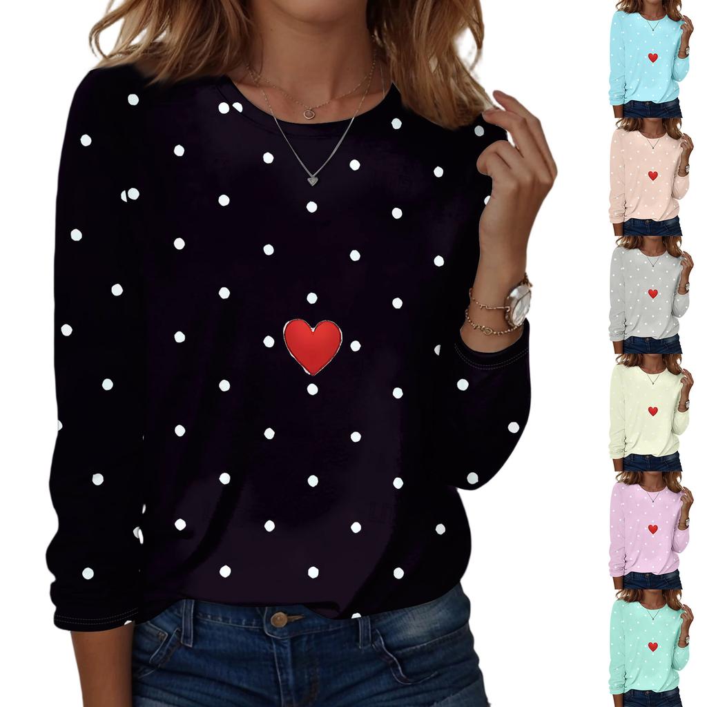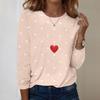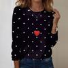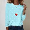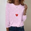 Damska codzienna bluzka z długim rękawem z nadrukiem walentynkowym i okrągłym dekoltem