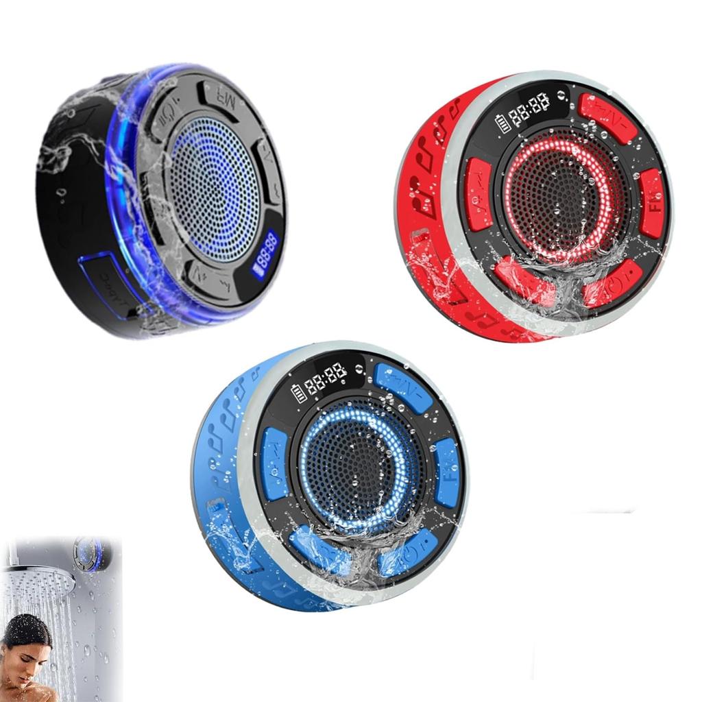 IPX7 Shower Speaker With RGB Lights & LED Display, Bluetooth Speaker With Detachable Suction Cup, 360° Clear Sound, Portable For Home & Travel