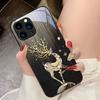 Luxury Deer Blue Pink For IPhone 16 Pro Max 15 Pro 14 13 12 Mini 11 XS Max XR 7 8 Plu SE 2022 Tempered Glass Phone Case