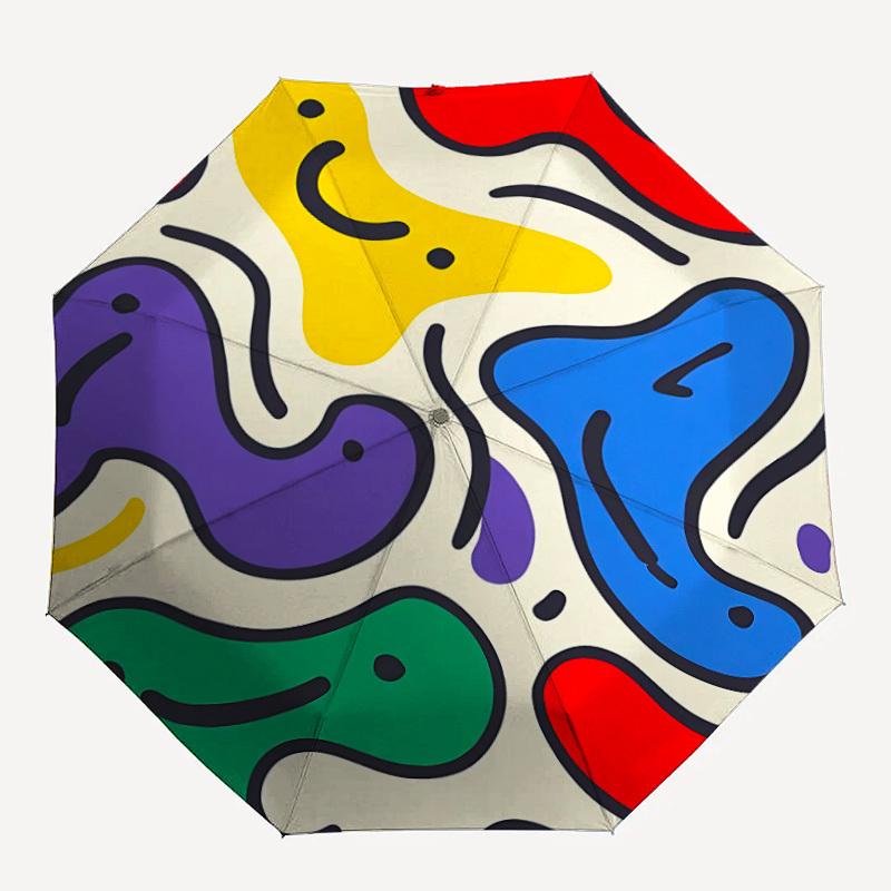 1pc Abstract Shapes Automatic Open/Close Umbrella with One Touch Button,, Windproof Design Lightweight Portable Umbrella for Women & Men6043
