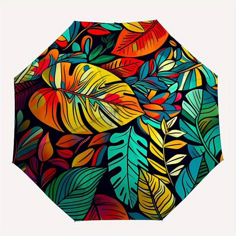 1pc Tropical Leaves Auto Open/Close Umbrella with One Touch Button,, Windproof Design Lightweight Portable Umbrella for Women & Men6104