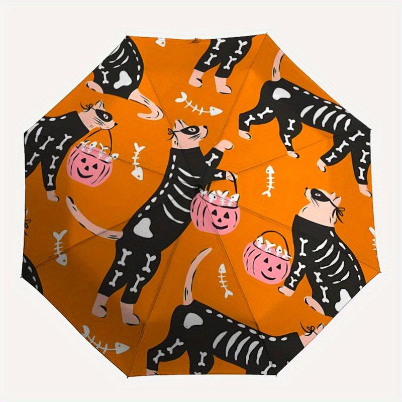 1pc Skelecat Halloween Automatic Open/Close Umbrella with One Touch Button,, Windproof Design Lightweight Portable Umbrella for Women & Men6123