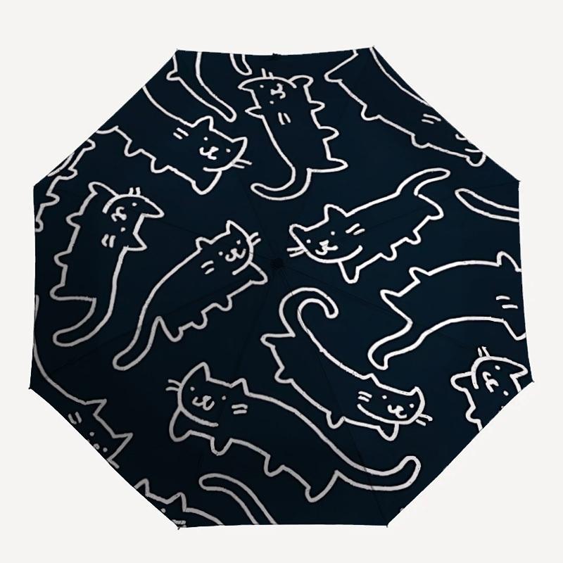 1pc Cat Pattern Automatic Open/close Folding Compact Umbrella, 8 Rib Sturdy Canopy, Lightweight Portable, Everyday Use, Gift,,077